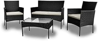 Panana 4 Seater Rattan Furniture Set Lounge Corner Sofa Set with Storage Cabinet Cushions and Cover Coffee Table Garden Patio Conservatory Outdoor Black |