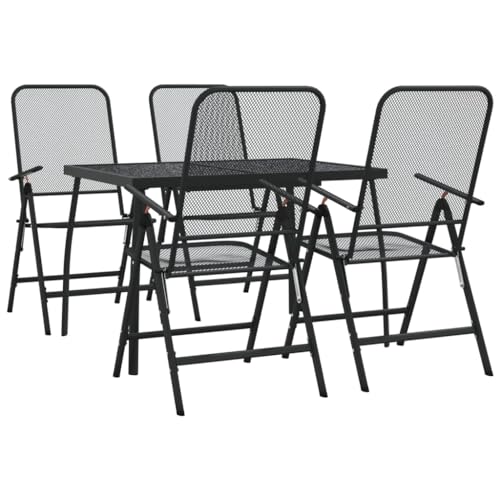 Garden Mile Modern Folding 6 Piece Furniture Set Weatherproof Table, Parasol Umbrella and 4 Chairs Set - Indoor Outdoor Decorative Accessories (Black & Silver) |