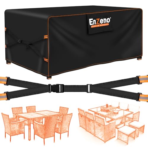 Enzeno New Upgrade Garden Furniture Covers,180x120x74cm Outdoor Table Cover Waterproof,500D Heavy Duty Patio Furniture Cover,Wider Vents for Outdoor Rectangle/Rectangular Table and Chair Set Covers. |