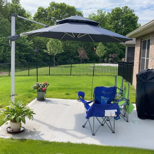 GardenCo 3m Cantilever Banana Parasol INCLUDES BASES & COVER - Hanging Parasol with Crank Handle - Outdoor Garden and Patio Sun Shade (Grey) |