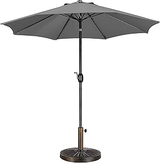 Yaheetech 2.7m Garden Parasol Umbrella Patio Table Umbrella Outdoor Tilting Crank & Handle Parasol with 14kg Resin Base Stand Grey |