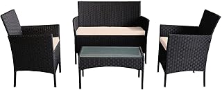 COZYBRITE Rattan Garden Furniture Sofa Set with Cover Coffee Table Chairs 4 Seater for Outdoor Patio Balcony 6210-B (Brown +Beige Cushions) |