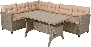 ANIROY Outdoor 3-Piece Patio Set, Garden Corner Sofa, Rattan Garden Furniture Lounge Set, Entertaining Set for Outdoor, Patio, Poolside, Khaki |